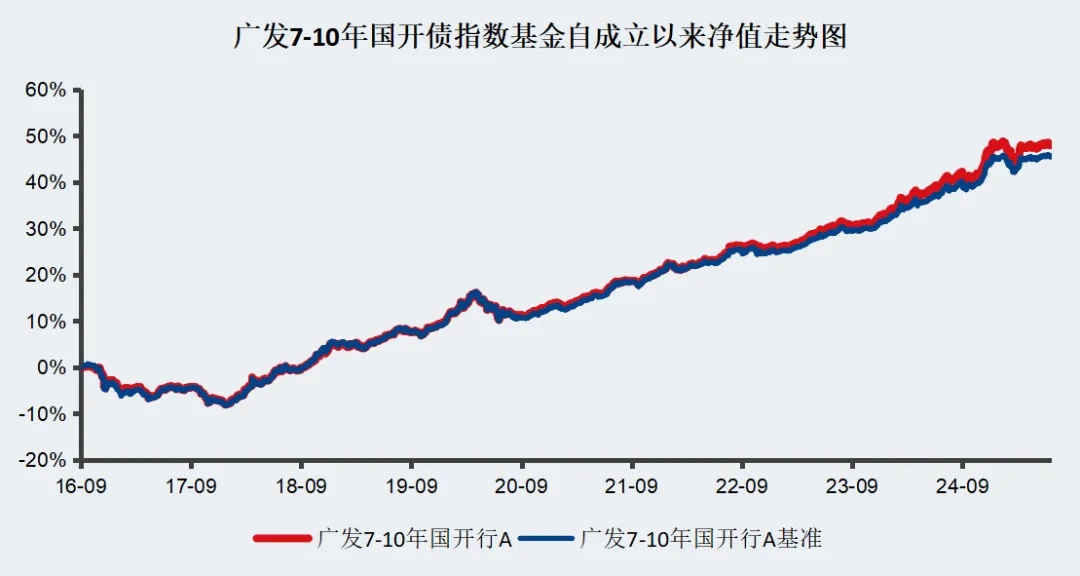 成立9年以来,广发中债7-10年国开债指数取得了4.58%的年化收益率,在跟踪同指数的产品中位居前列。(数据来源:Wind,截至2025/6/30,业绩仅计初始基金份额,下同)