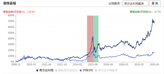 但这天之后,股灾的余温尚在,易方达科翔混合就在在9月2日这一点兑现风险,发生了最大回撤50.87%。