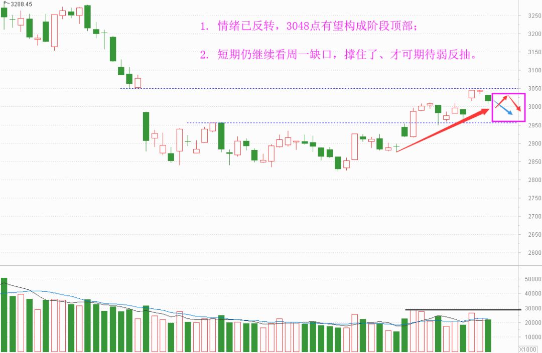 而就短期,仍可继续看周一缺口(2992点):撑住了、短期会有弱反弹或弱僵持,反弹完、大概率继续走回落;如果缺口撑不住,就看能否杀出量来了,杀不出量、需看阴跌节奏,能杀出恐慌盘来,也许空间上会难看,但难看过后,超跌反弹也就可期待了。