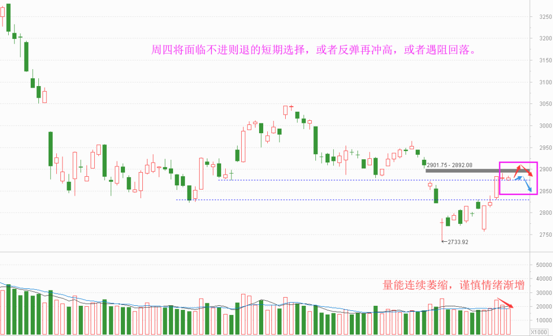 周三,大盘又震荡僵持了一天,收盘还是2880点,但振幅更窄了,周二振幅17点,周三只有13点;量能也更低了,沪市成交1832亿元,对比下周一的2471亿元,才2天而已。