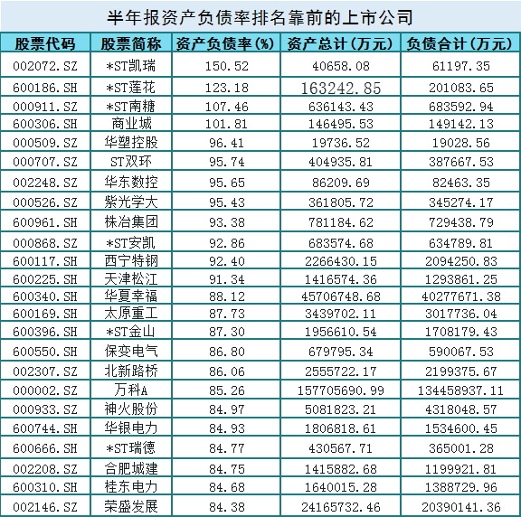A股半年报披露已经接近尾声了,统计发现有4家公司资不抵债,负债率100%以上,高负债的公司务必是要警惕和规避的。