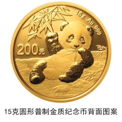 (四)15克圆形金质纪念币为普制币,含纯金15克,直径27毫米,面额200元,成色99.9%,最大发行量600000枚。