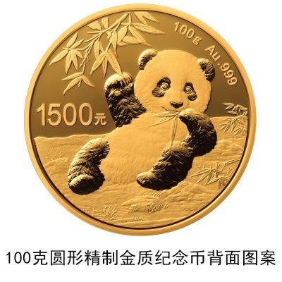 (七)100克圆形金质纪念币为精制币,含纯金100克,直径55毫米,面额1500元,成色99.9%,最大发行量20000枚。