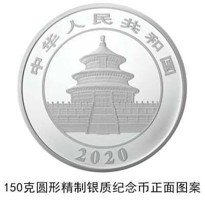 (十一)150克圆形银质纪念币为精制币,含纯银150克,直径70毫米,面额50元,成色99.9%,最大发行量60000枚。