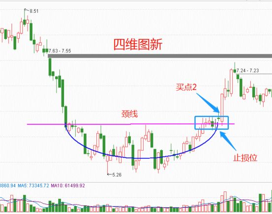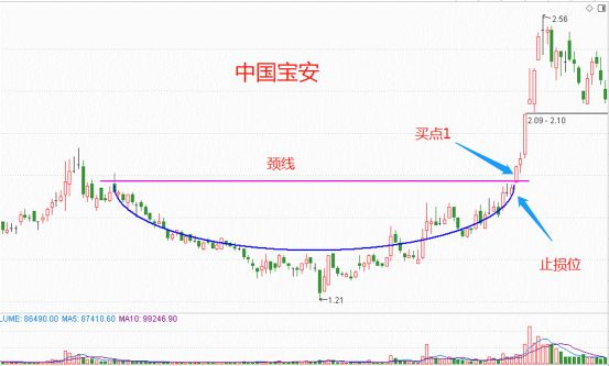 今天最低2857,只差一哆嗦。 市场不给机会就算了,如果还有新低最好,如果不创新低了,短期还有震荡反复机会,到时候直接找节奏点加点。 对于大盘,上午指数低走的时候,我就在直播间说了:下跌不流畅,指数进入2830-2870之间,所以创新低后,意味着随时反弹。 大盘也很给面子,说完就反弹了。 当然了今天反弹力度和量能还是不足,预计持续性不会太强,指数短期还是震荡为主。 不过今天个股明显活跃了,原因是各指数相对之前更加同步。 对于交易型选手,继续控制仓位的情况下做;对于稳健选手的依然不是最合适的进场机会,因为现在个股切换快,而且需要调整介入,如果选股能力弱,纪律性不好,看盘时间不专注是很难做好的,甚至搞乱心态。 所以整体策略也不会有太大调整。 【形态教学】 底部形态-圆弧底 圆弧底形态属于一种盘整形态,多出现在中长期价格底部区域,是极弱势行情的典型特征,其形态表现在K线图中宛如锅底状。 圆弧底是反转形态,如果伴随着股价前期的放量一直横盘是明显的吸筹,阳线放量,阴线缩量,股价横盘,一旦形成圆弧底洗盘,后期大概率上涨。 圆弧底交易规则: 买点1:股价走势放量突破圆弧颈线位置 止损位:股价跌破颈线位 举例1:中国宝安 买点2:股价走势在颈线位附近做一个横盘,放量突破横盘震荡区间后介入 止损:股价跌破震荡区间的下轨位置 举例2:四维图新 圆弧底的特点: (1)股价处于低价区; (2)股价变动简单且连续,先是缓缓下滑,而后缓缓上升,K线连线呈圆弧形; (3)成交量变化与股价变化相同,先是逐步减少,伴随股价回升,成交量也逐步增加,同样呈圆弧形; (4)耗时较长; (5)“圆弧底”形成末期,股价迅速上扬形成突破,成交量也显著放大。