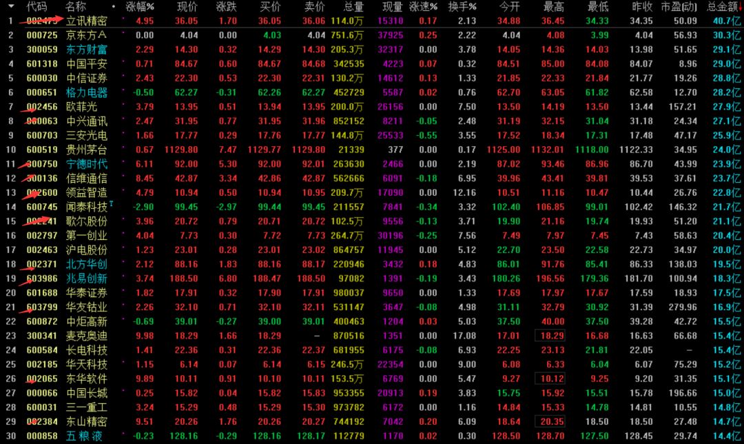 科技股霸屏了,一些大票再度集体暴动,消费电子最为抢眼,芯片前半天还行,尾盘大部分跳水。
