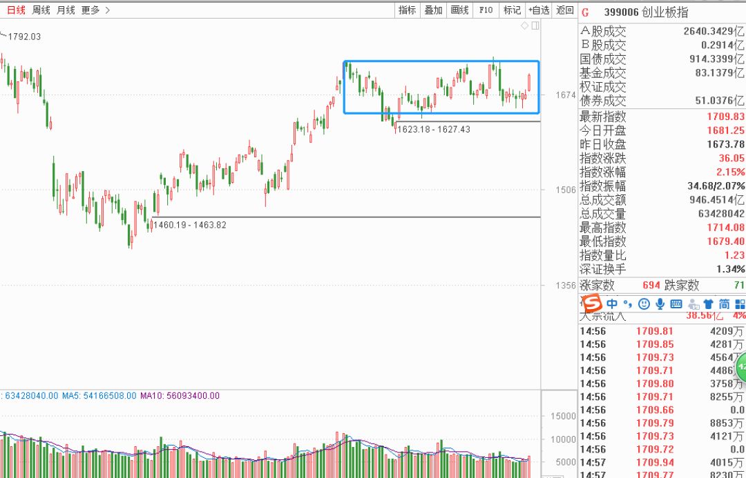 除了华业,另外还有22只个股低于1.5元,逼近1元面值。一旦打破面值后,这些个股也将进入退市的倒计时。 其实低价股越来越多是大势所趋,这是A股港股化和美股化的特征之一,香港那边的仙股和垃圾股,几乎都是低价股,而且基本面无人问津,虽然不跌,也很便宜,好像一直在低位,看起来很安全。但因为是价格太低,所以K线感受不到,本身估值几毛钱,再跌个几毛,相当腰斩。 所以做价值投资不要太关心股价高低,要看公司基本面,估值水平等等,很多好公司股价都高,对于做短线,主要关注的活跃度,弹性,是否有资金关照。 2、富时罗素指数公司近期宣布:将阿里巴巴的可投资权重由55.17%提高至74.31%,2019年12月23日生效。 指数中提高阿里的权重,说明指数公司通过对阿里的全面评估,已经认可了阿里的价值,不仅是投资价值,还有社会价值。在此之后各大投行也会基于此设计一些衍生交易产品,比如牛熊证、涡轮,以此来增加可投资的标的。 另一个港股巨头腾讯在被纳入恒指成分股以后,基本已经成为恒指中数一数二的权重股,为恒指的持续上涨以及恒指的稳定做出了不小的贡献,而且事实也证明腾讯自上市以来,股价也是翻了百倍,所以我们经常听到恒指又创了历史新高,而我们A股十年还是原地踏步。 其实我们一直说A股不行,比如上证指数被人诟病,其实完全可以做个改变,比如用沪深300指数代替大盘,比如把中石油类股票剔除,把一些优质白马,高成长的科技股纳入进去,否则指数很难有想象空间啊。但这是村长是否有魄力的问题,毕竟都是央企,没这胆。 尾盘走强这是好事,最近两天都是低开高走,已经说明了市场的反弹意愿,当然量能还是没有明显提高,所以说明今天的反弹是还是震荡分化格局的一部分。 好处是对于交易中朋友是好事,继续围绕个股来制定策略; 对于稳健等企稳行情的朋友来说也不要遗憾,以免搞乱自己节奏。 原因很简单,没量的震荡行情,真正考验的还是选股能力和纪律性,所以我并没有一棒子打死所有人都不能参与,这是市场特殊行情决定的,不过这种情况不会长期存在,市场总会选择方向,总会有趋势行情到来,对于趋势交易者,这是必须克服的,没有人能把市场所有钱都赚了。 上证还是在调整通道里: 创业板:横盘震荡 短期还是震荡行情为主,指数还会有反复过程,特别是前高压力容易产生回调,策略不会有太大变化,300etf完美错过了低吸,只能重新等加仓点了。 补充: 很多人问到了最近部分热点能否操作,比如消费电子,5G芯片等,这类技术形态处于先行筑底的板块,有点还做出高位突破形态,但只适合短线思路去操作,这只买点很重要,比如今天芯片概念北京君正涨停板突破,尾盘出现炸板,一旦追高就很容易受伤。 其实还有一个方向是,找调整比较充分,有启动形态的个股。就是我们可以按板块或者热点的方向去选股,但是通常还要加上一个条件,那就是个股技术形态符合买点要求。