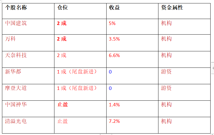 中国神华止盈了,原计划是防守,现在行情好了自然要调出;清溢光电止盈,主要考虑自己科创板仓位有点高。