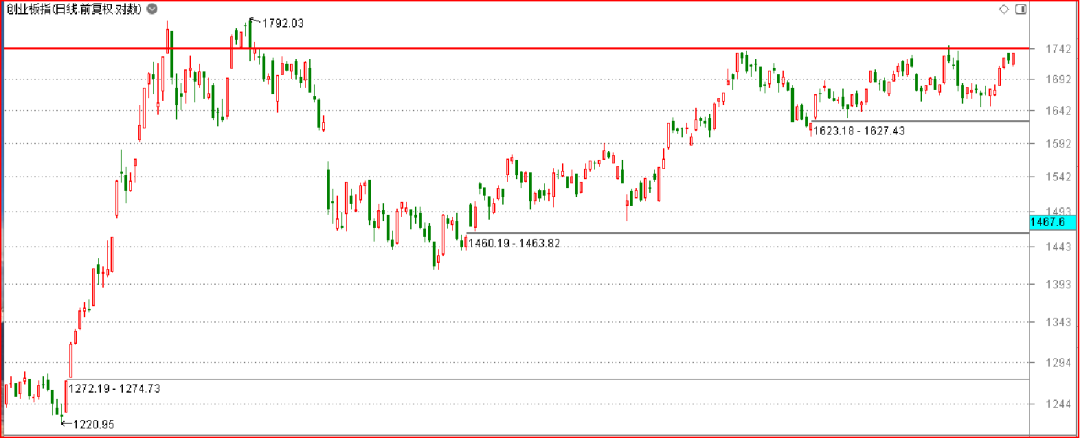 接下来,创业板指将第四次挑战重压力位1740;俗话说,事不过三,我觉得这次挑战成功的概率会很高。